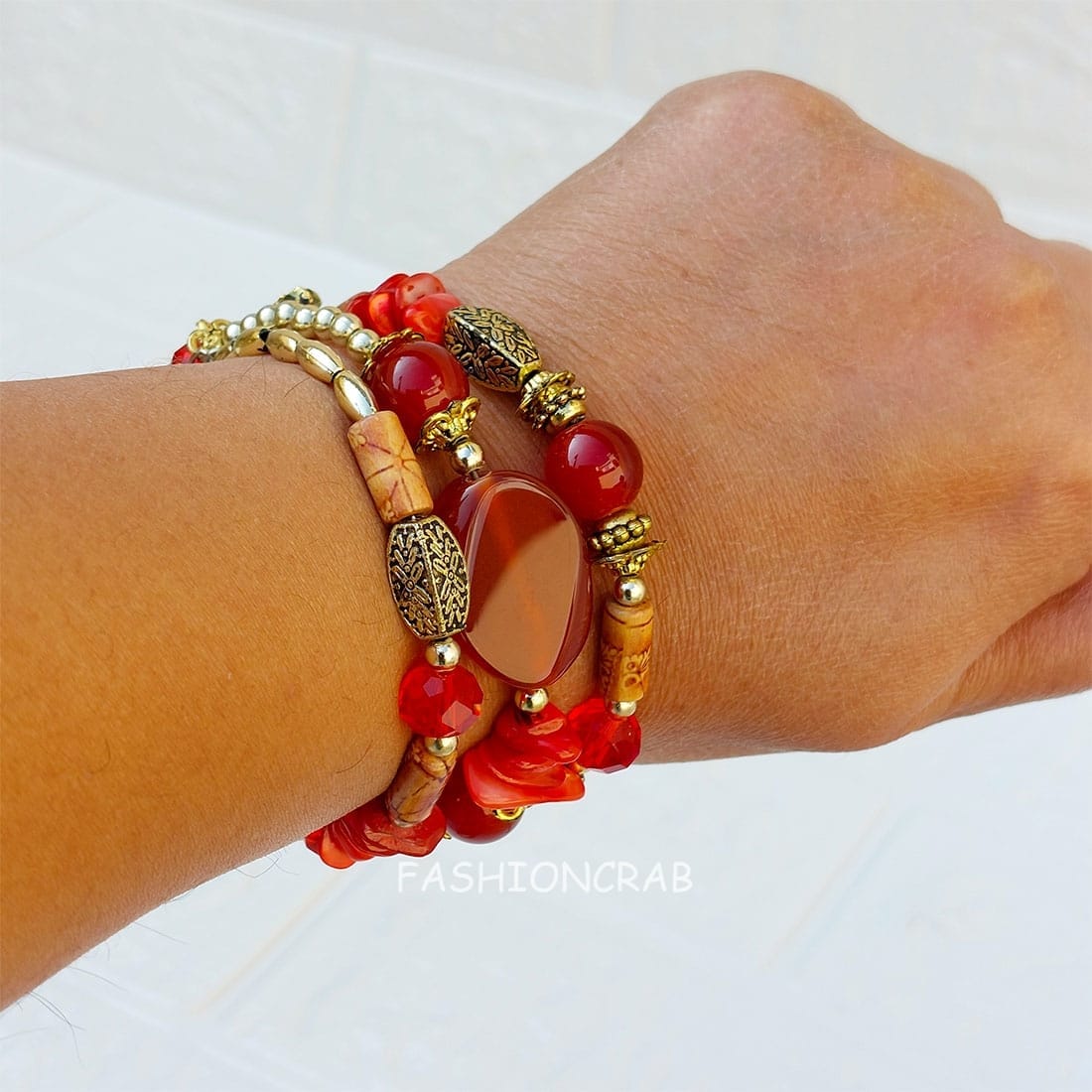 It is a beautiful Red Bracelet for Women. This charm bracelet is very good in quality, light in weight as well as adjustable. It is made up of Golden Chain and Multicolor Beads. Wear this fashion bracelet with the matching saree, suit or any Indian or western attire to get a classy and elegant look. This adjustable bracelet is available at a pocket-friendly price at Fashioncrab. This love bracelet can be worn for Party, Birthday, Anniversary, Special Occasions and can also be Gifted to your loved ones.