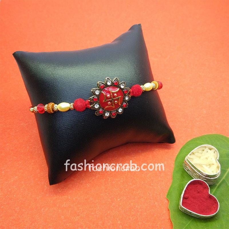 Indian Bollywood Style Red Swastik Rakhi for Bhaiya