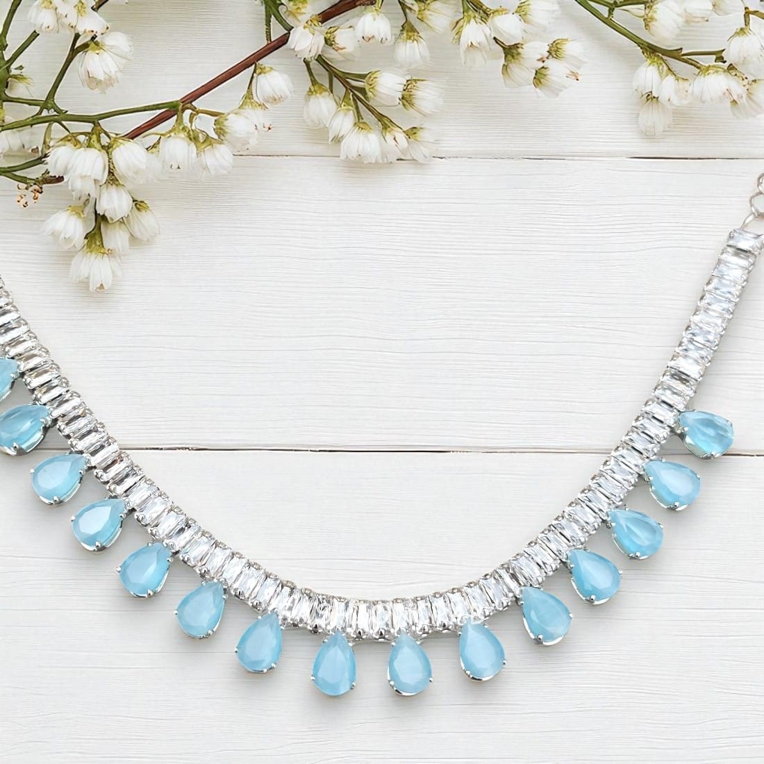 A pair of Silver Tone Riddhi AD Set – Blue.