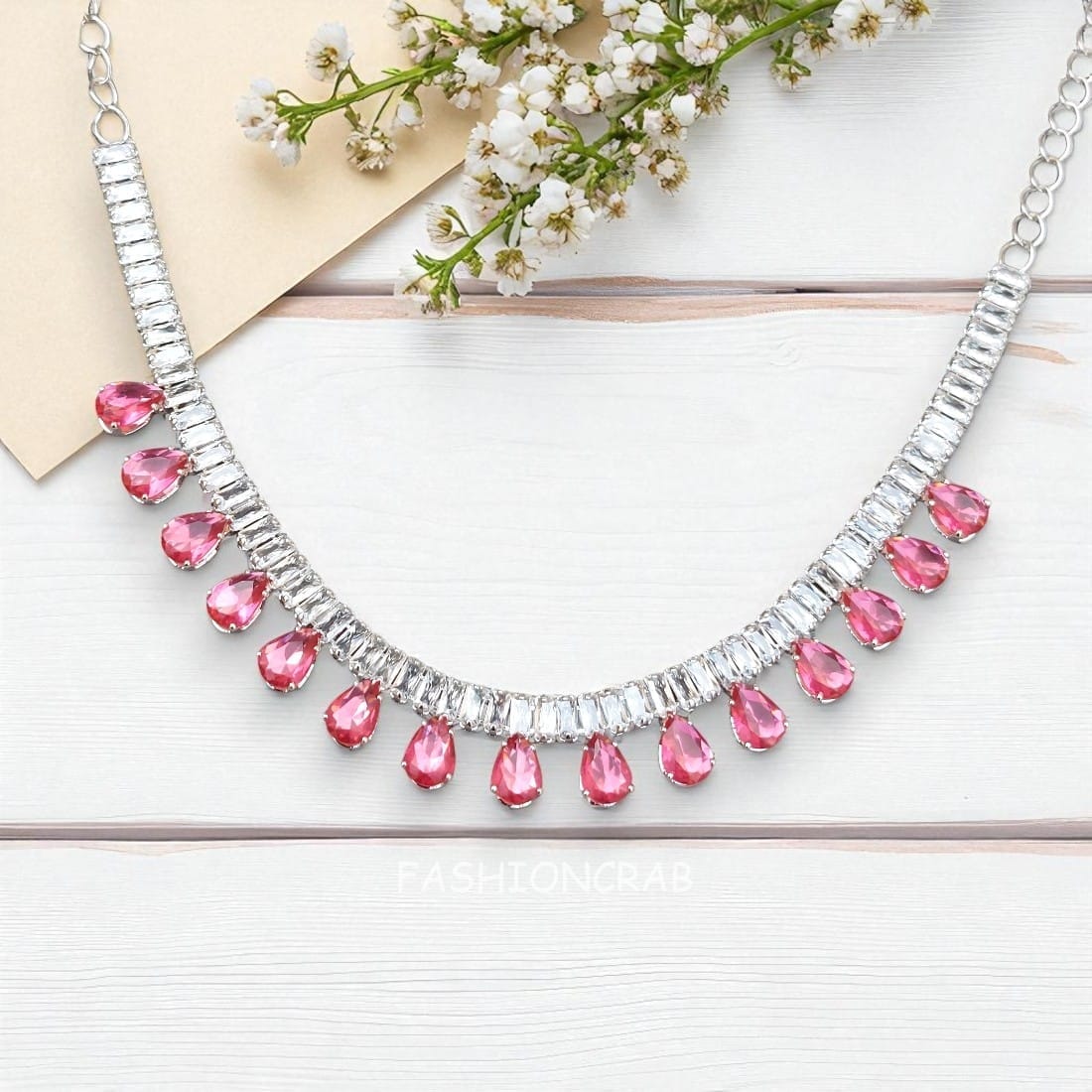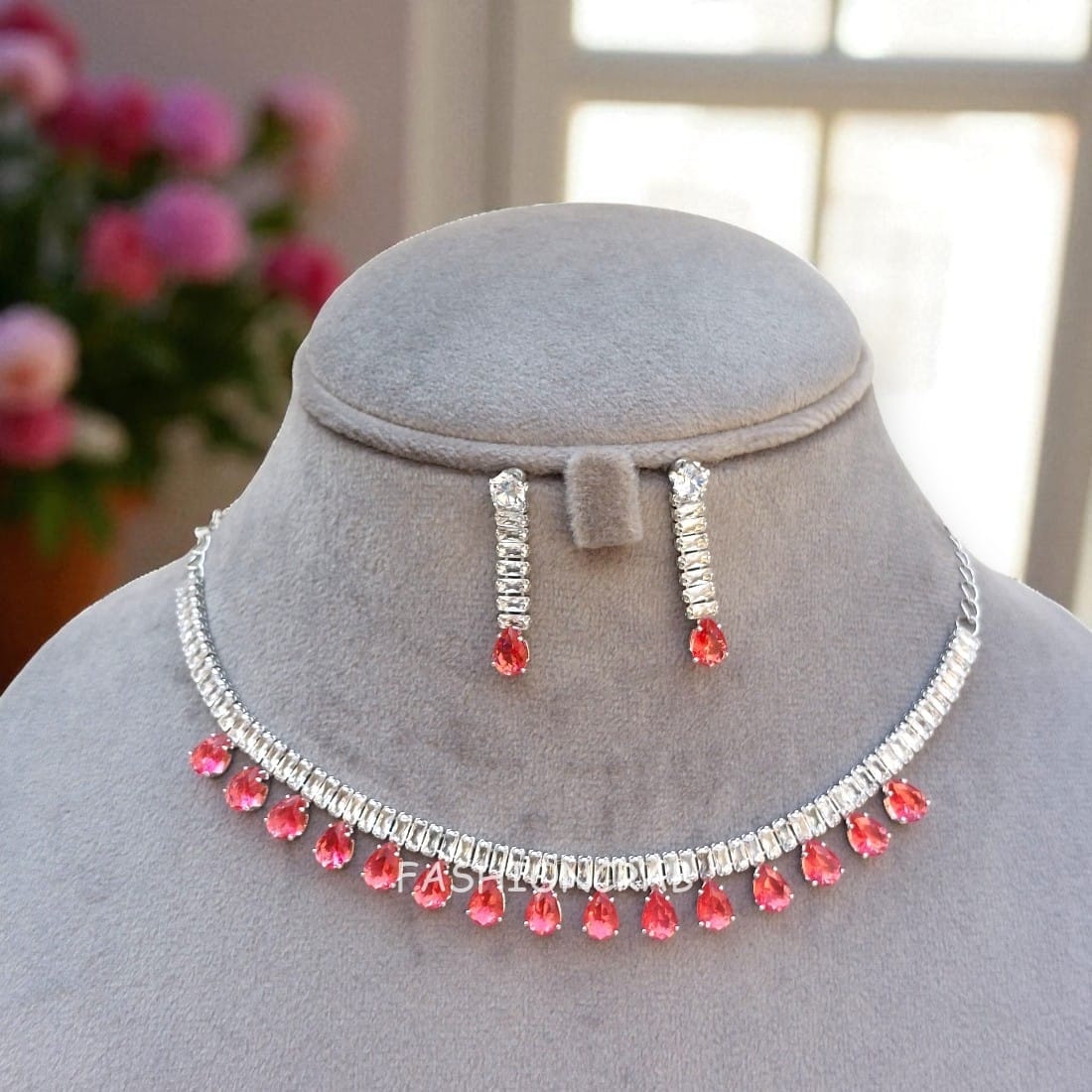 A pair of Silver Tone Riddhi AD Set – Pink.