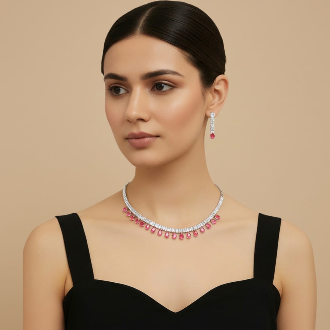 Indian Bollywood Style Riddhi Pink AD Necklace Set