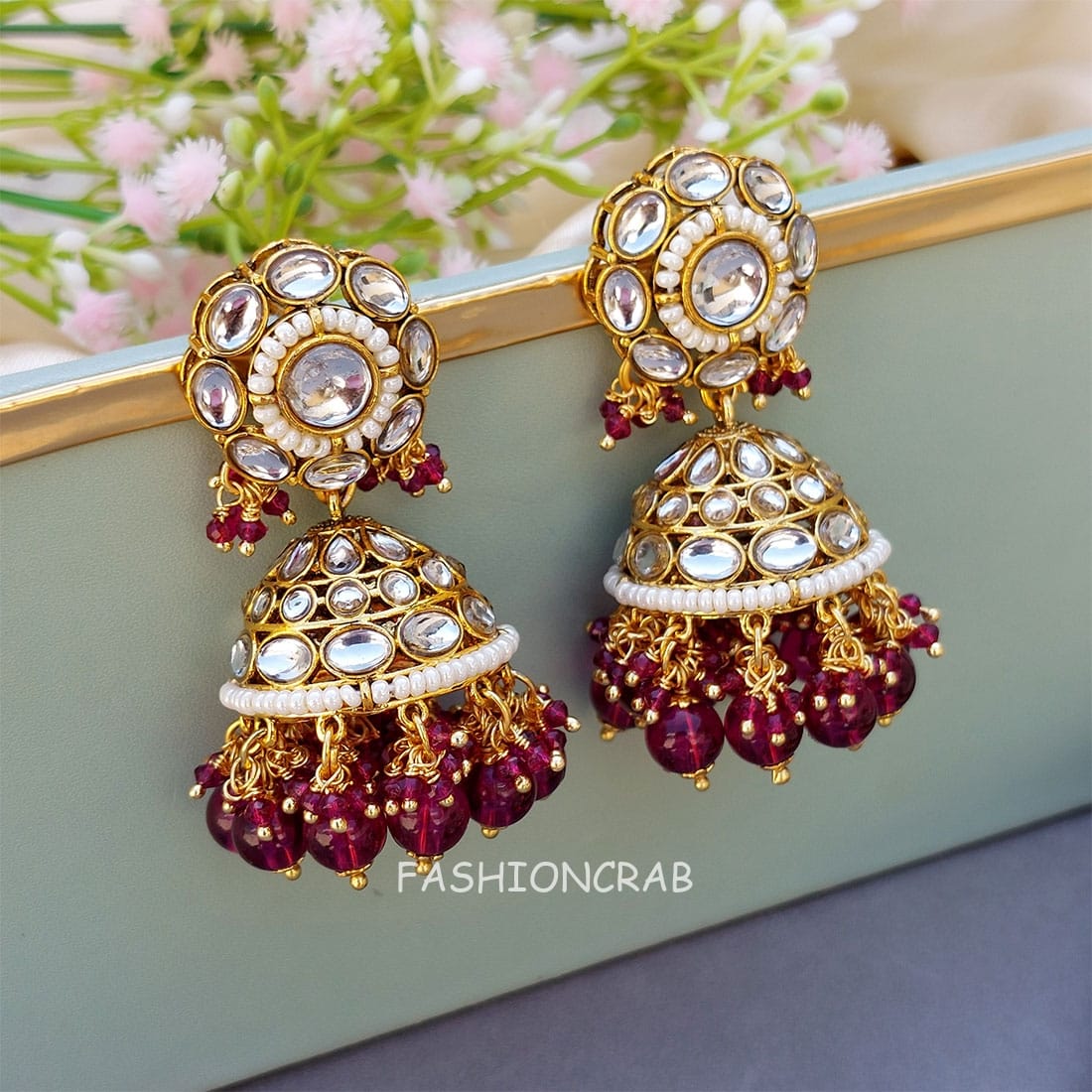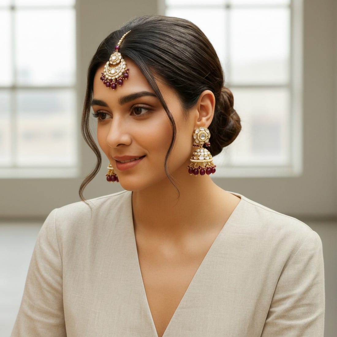 A pair of Rihanna Maangtikka with Earrings – Wine.