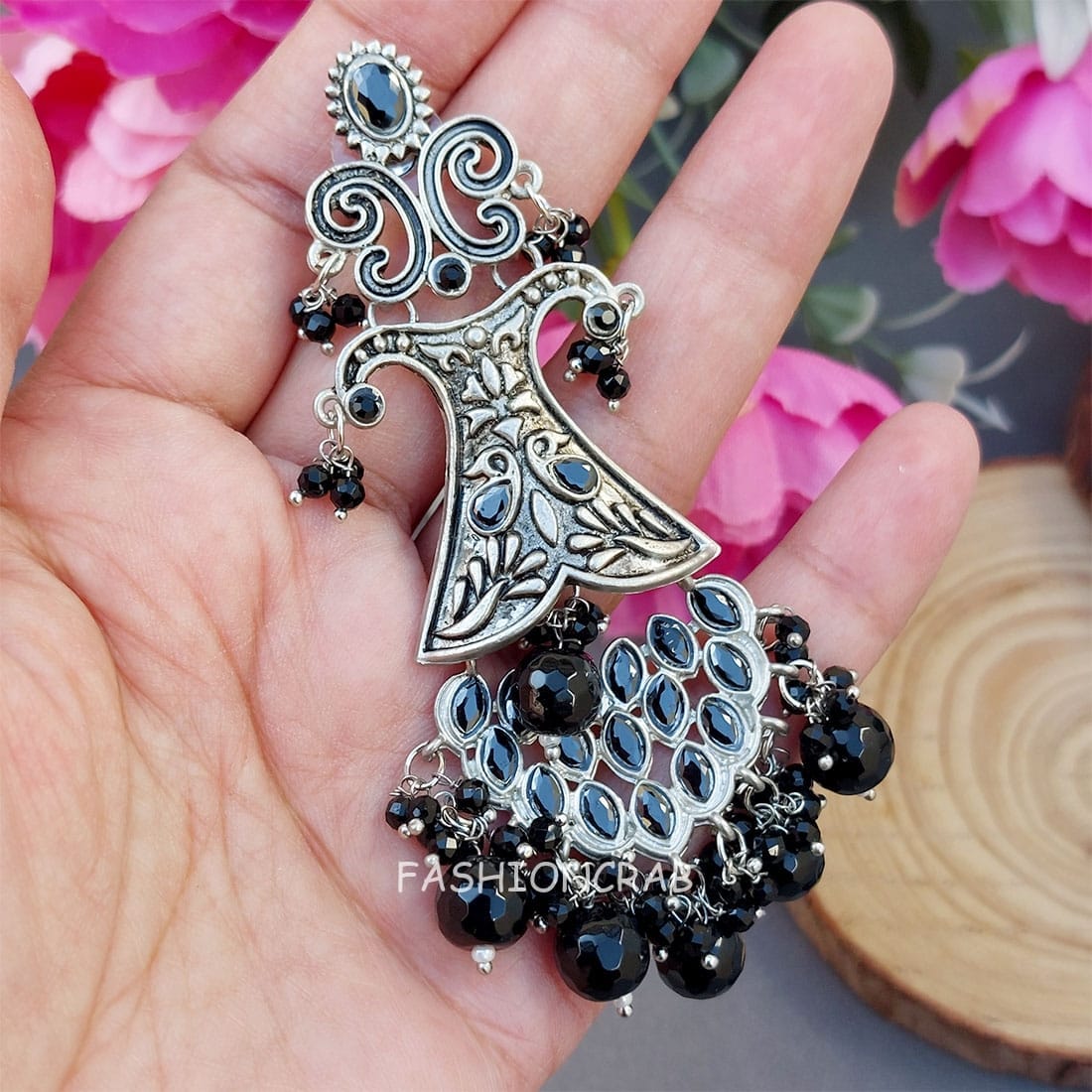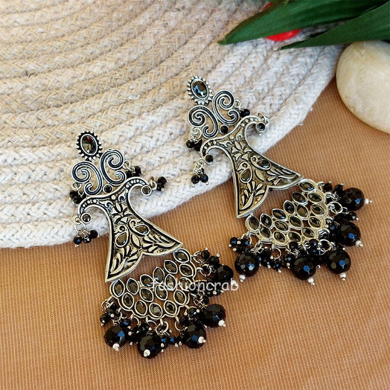 A pair of Saira Brass Earrings – Black Earrings for Kitty’s Party.