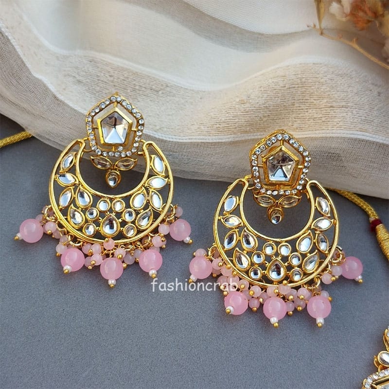 A pair of Sana Kundan Necklace Set Pink for Shaadi.