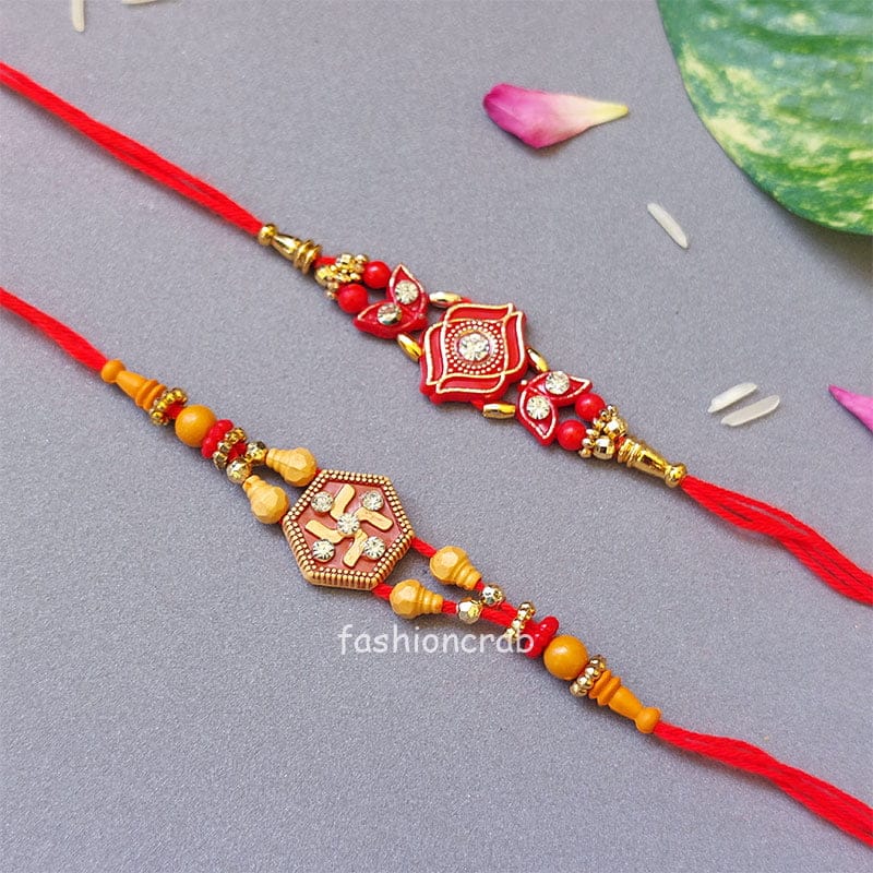 Indian Bollywood Style Set of 2 Fancy Thread Rakhi for Brother