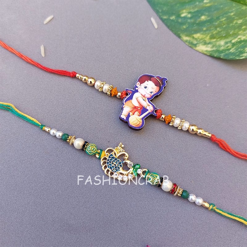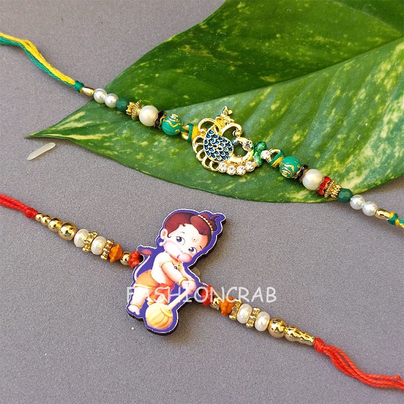 - Set of 2 Stylish Bal Hanuman and Peacock Rakhi