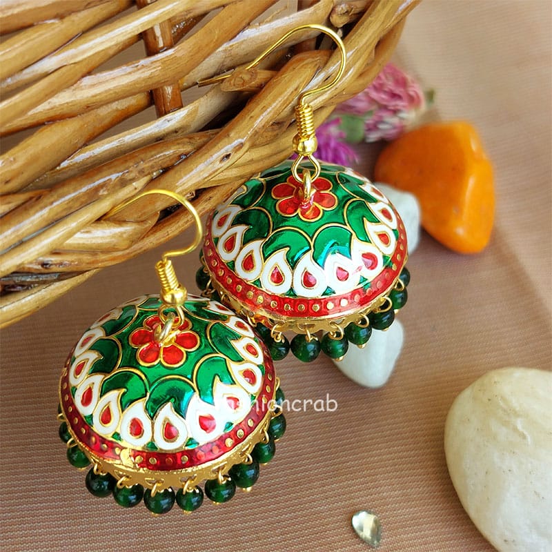 A pair of Gold Plated Women’s Traditional Pearl Jhumka Earrings – White Green.