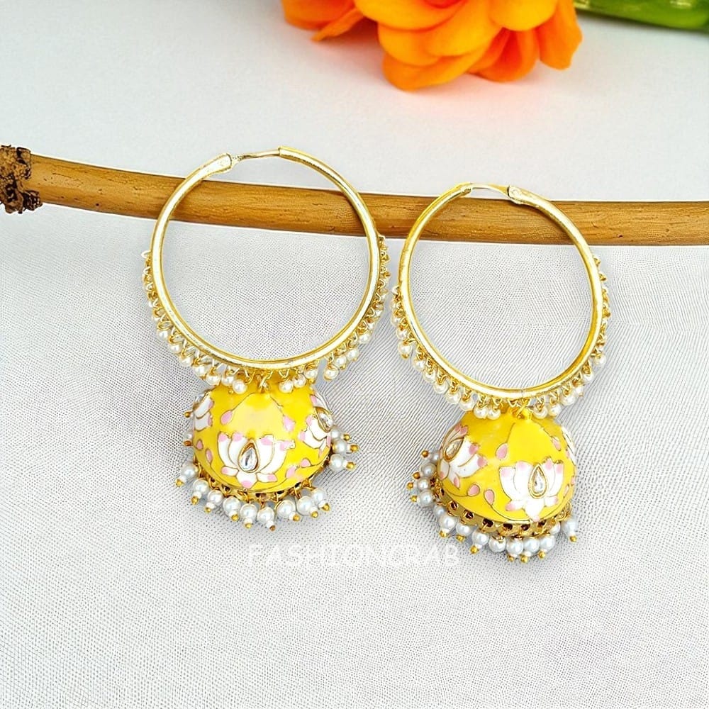 Indian Bollywood Style Yellow Color Jhumka for Saree
