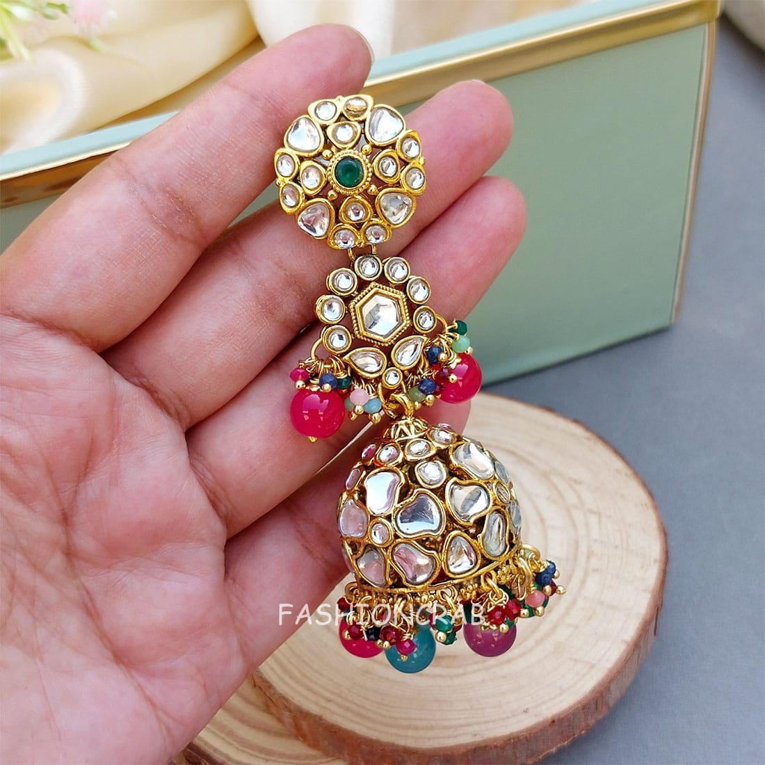 A pair of Zainab Kundan Jhumka – Multicolor.